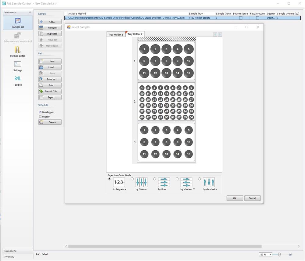To use MFX option on PAL system, the PAL Sample Control software is the user-friendly tool for the daily routine jobs. With a few clicks sample lists are generated or imported. Now PAL Sample Control starts the operation and the data acquisition. Since PAL Sample Control Interfaces seamlessly with most of the major chromatographic or MS data systems only one sample list has to be handled. Different user levels ensure process safety.