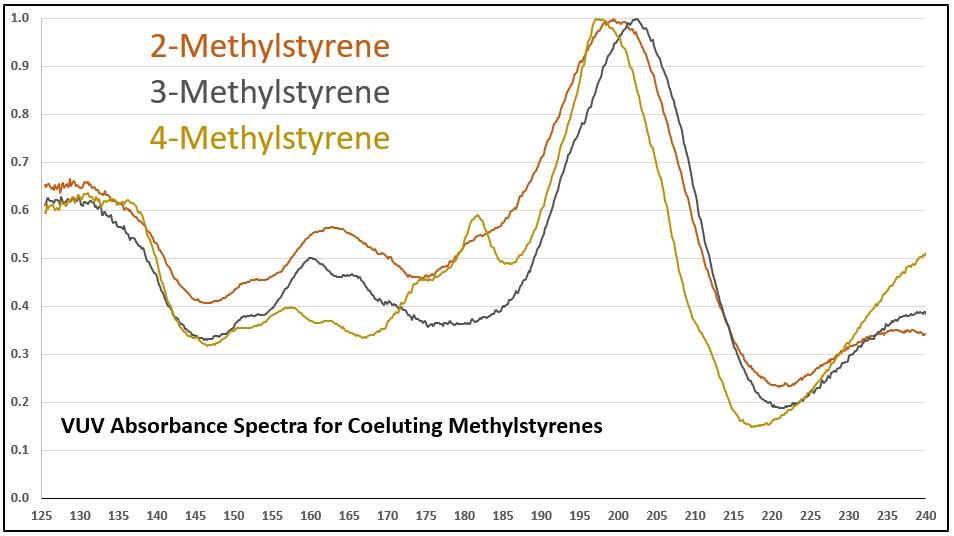 The absorption spectra are specific to each compound and provide unprecedented selectivity giving univocal identification of compounds in complex mixtures, including coeluted isomers.