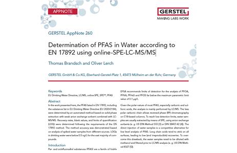 Determination of PFAS in Water according to EN 17892 using online-SPE-LC-MS/MS
