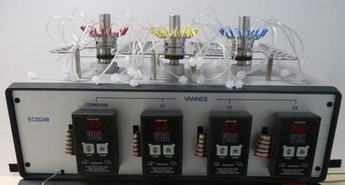 ECSD48 est un échantillonneur composé d’une vanne de sélection et de trois vannes 16 positions. Il permet ainsi de lancer des cycles analytiques sur 48 voies différentes. Le plateau de cet échantillonneur permet d’accueillir des vials de 20 ou 40 ml.