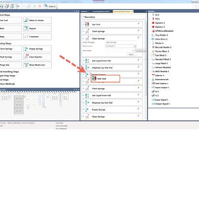 Pour les appareils PAL3 intégrés à un système GC-MS ou LC-MS, le logiciel PAL Method Composer vous permet de créer facilement des méthodes. L’interface graphique permet à l’utilisateur de choisir les étapes du protocole simplement par glisser déposer. Ceci signifie que l’utilisateur n’a pas besoin d’être spécialiste en programmation ou en robotique pour établir de nouveaux procédés sur l’appareil. La vérification et validation de la nouvelle méthode est réalisée automatiquement au fur et à mesure de sa création, évitant ainsi les problèmes lors de son exécution.
