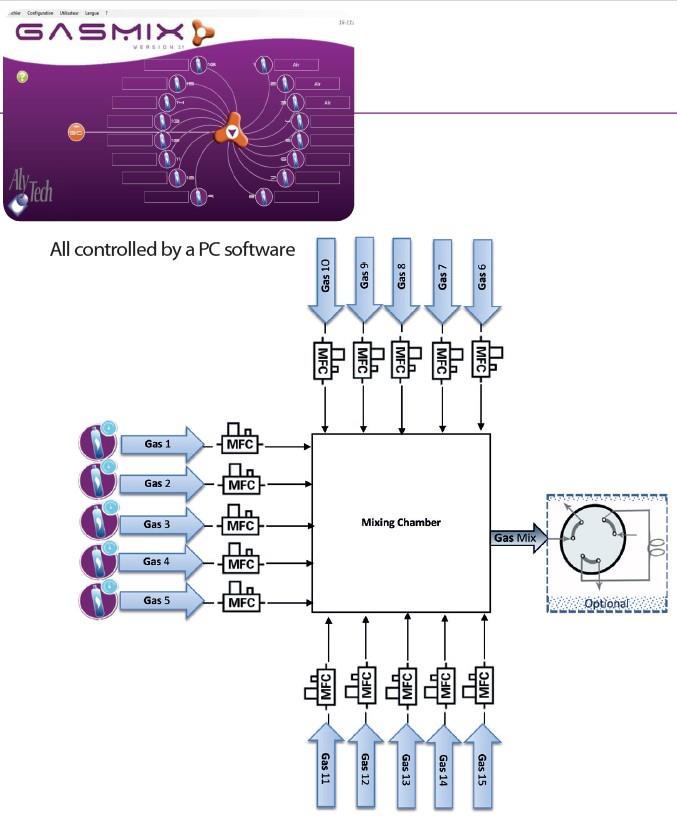 Uno strumento versatile per creare miscele di gas estremamente complesse grazie alla sua capacità di Diluizione – Miscelazione simultanea di fino a 16 gas.