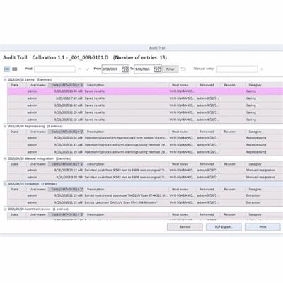 - Integrità e conformità dei dati: soddisfa gli standard di integrità dei dati utilizzando controlli tecnici integrati per acquisire, elaborare, segnalare e archiviare i dati in modo sicuro come i laboratori che devono rispettare le linee guida di conformità FDA 21 CFR Parte 11, Allegato 11 UE, GAMP5, nonché ISO/IEC 17025 e 40 CFR Parte 160 dell'EPA