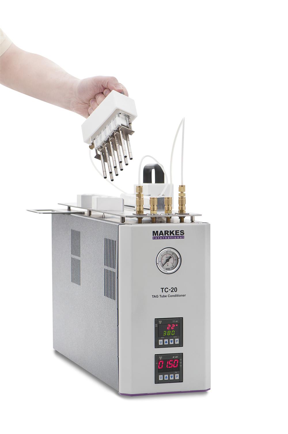 Il TC-20 TAG è una variante del TC-20, che consente di condizionare i tubi dotati dello speciale dispositivo RFID TubeTAG Markes, per il tracciamento di tutte le operazioni in cui lo specifico tubo è stato impiegato.