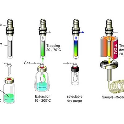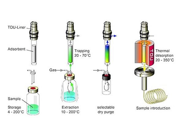 • Analytes from the gas space above a liquid, viscous or solid sample are continuously enriched on an adsorbent