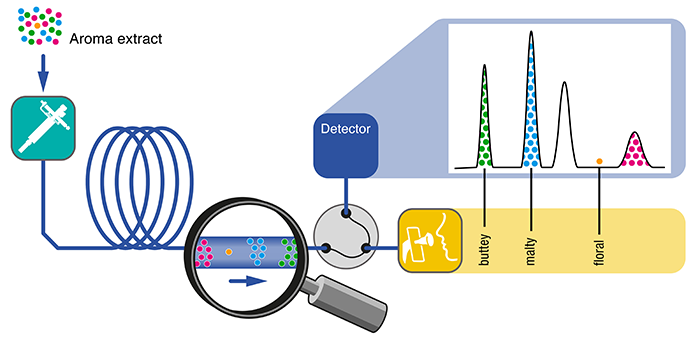 The GERSTEL ODP 4 GC-O port enables the instrumental and olfactory detection of odorous substances in parallel.