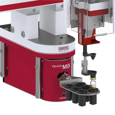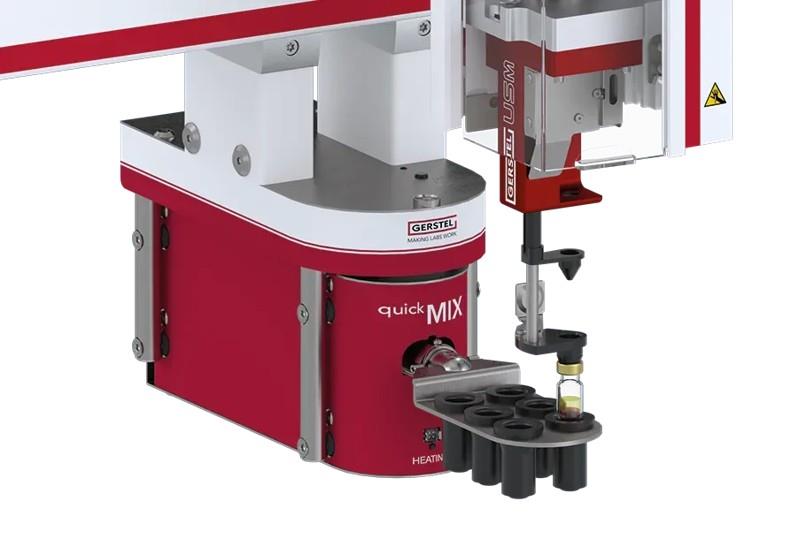The GERSTEL QuickMix option allows a rapid vertical shaker to be integrated as part of the automatic sample preparation process using the MultiPurposeSampler MPS.