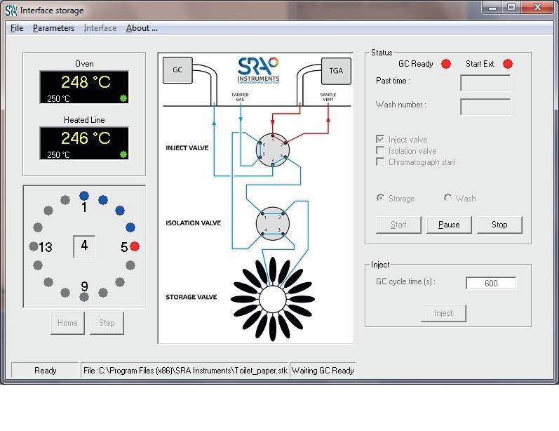 The IST software developed by SRA allows to modify the storage sequence, save the methods, view the instrument status and automatically manage the start of GC analyses.