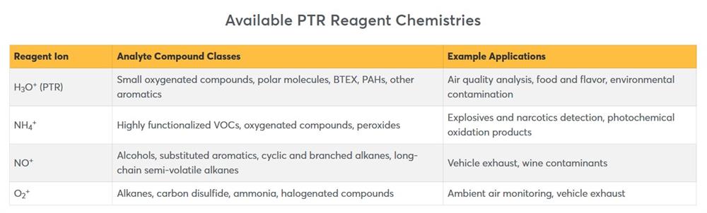 Available with a variety of positive reagent ions for flexible VOC detection High sensitivity with quantitative detection of VOCs from pptV to ppmV No dependency on water vapor.