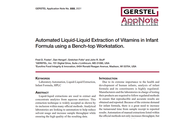 La stazione preparativa GERSTEL si basa sul campionatore Multi Purpose Sampler (MPS S roboticPRO) ed è in grado di automatizzare l’estrazione liquido-liquido di vitamine dal latte artificiale.